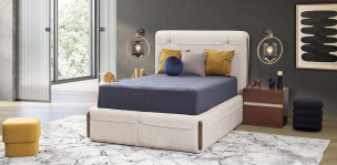 Cama tapizada de estilo contemporáneo- glam estructura en madera de pino de una durabilidad inigualable, soporte central, tapizado que le da un plus de comodidad moderno y sofisti ...