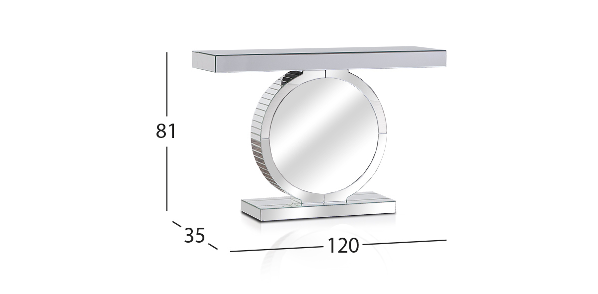 Consola Estelle. Cubierta de cristal y pedestal diseñado en una combinación de espejos y cristales dispuestos en formas geométricas dan un aire de sofisticación a tu estancia. Incluye un sistema de luz led que realza su belleza.