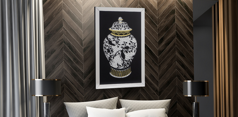 Llena tu espacio con estilo y actitud. Nuestros cuadros perfilados con cristales están presentados sobre un elegante fondo negro creando un elegante contraste. Además, su marco fabricado con espejos angulados crean un juego de luces y reflejos que enmarcan la belleza de esta pieza.