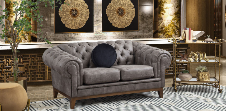 Sillón de dos plazas, su estilo clásico te lleva a un ambiente de exclusividad. El trabajo artesanal de cada pieza para obtener un terminado avejentado y la elegancia inigualable del capitoneado son un símbolo indiscutible del estilo clásico inglés. Tapizado en eco piel con espuma suave para un excelente confort; base de madera solida de nogal. Convierte tus reuniones en todo un ambiente clásico con este novedoso y elegante diseño. Vive los mejores momentos en casa. Disponible en diferentes tonos.