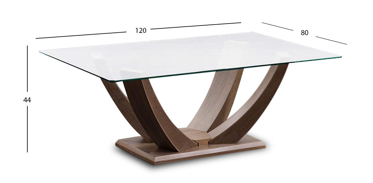 Mesa de Centro Fantasy. Su combinación de materiales y texturas realzarán la decoración de tu casa, con chapa de Nogal natural y cubierta de vidrio templado 12 mm ofrecen una mayor durabilidad y gran diseño.