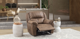 Sillón reclinable Prescott de estilo contemporáneo. Fabricado en madera de alta calidad, con resortes embolsados y tapizada en microfibra un material innovador con gran capacidad de resistencia al desgaste, fácil de limpiar y de agradable sensación al tacto. Además, le añadimos un toque de funcionalidad gracias a su sistema reclinable con mecanismos eléctricos para una comodidad absoluta.