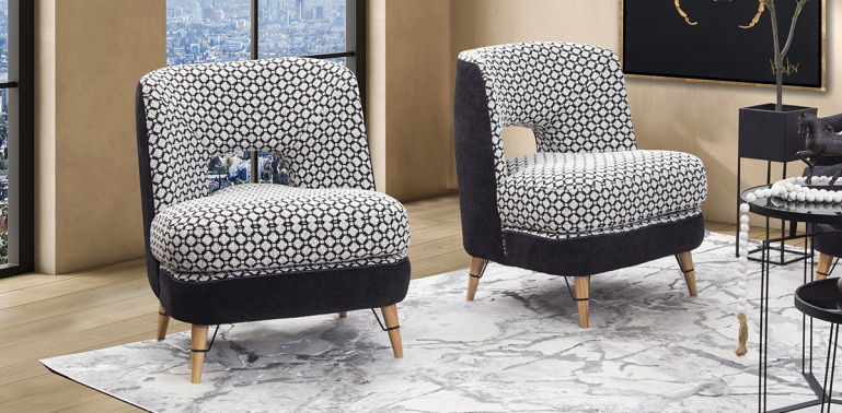 El Sillón Ocasional Nero está fabricado en su estructura de madera sólida y es tapizado en tela importada con patas de madera.