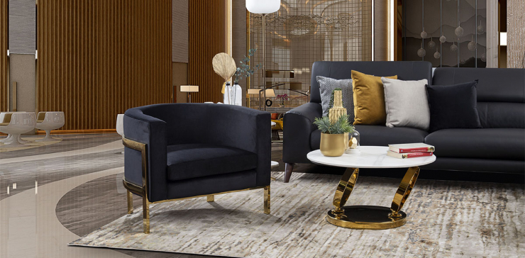 Sillón Ocasional Terciopelo Royal Gold Moon NegroNormal $29,000.00 Precio Especial $18,822.35Precio al Pagar $15,999.00Incluye: Sillón