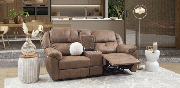 Sofá 2 Plazas Con 2 Reclinables Eléctricos Y Consola Prescott Café