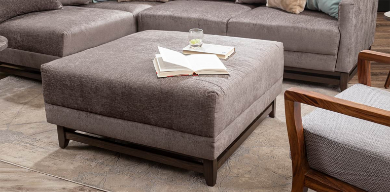 Taburete Adelei, un diseño de gran belleza, está fabricada con una estructura de madera de pino y tapizada en tela de suave microfibra que son garantía de frescura y durabilidad.